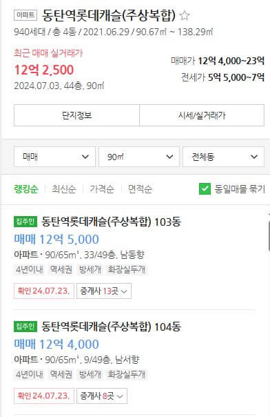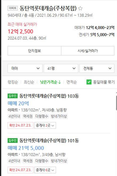 ✅ 102 타입 : 실거래가 19.5억, 매물 20억