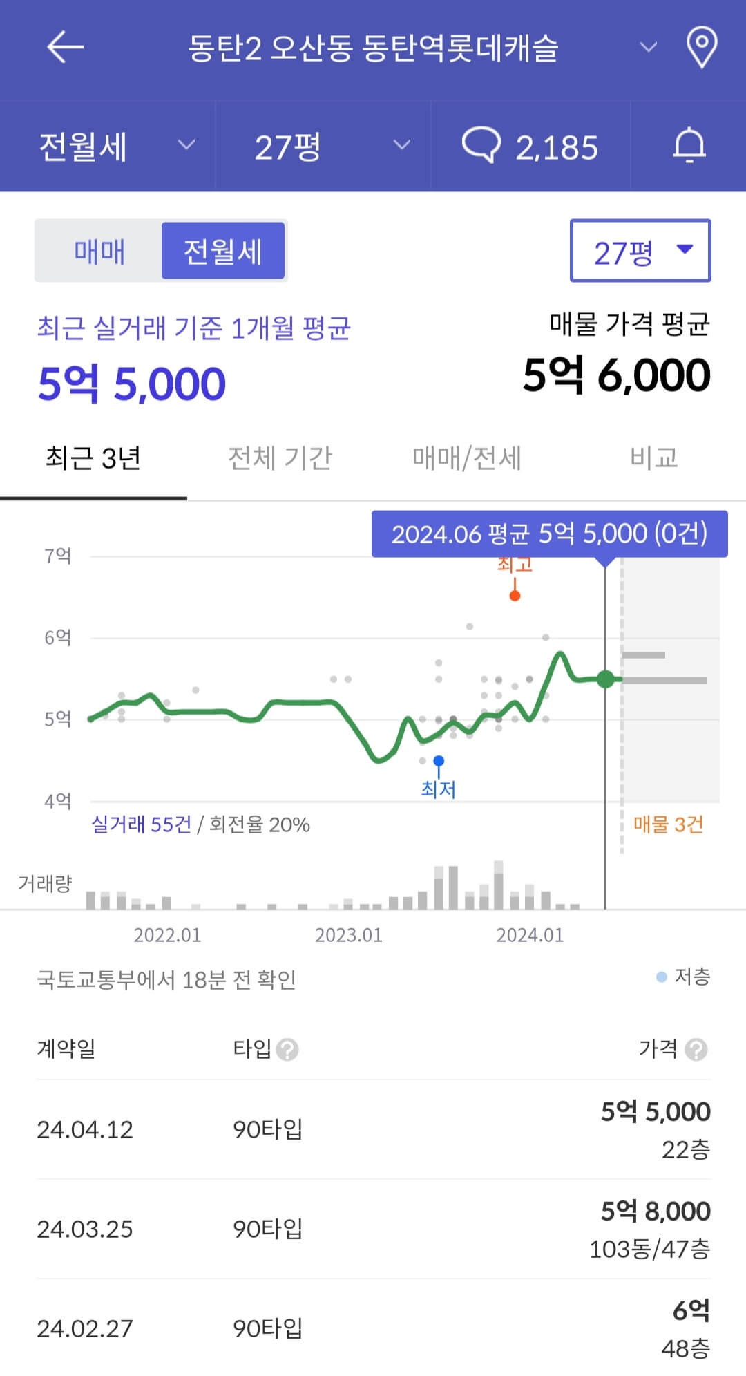 ✅ 65 타입 : 실거래가 12.25억, 매물 12.5억 , 전세매물 5.5억